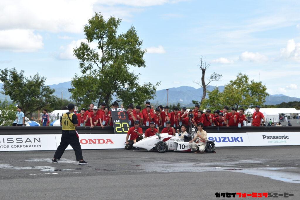 タイムゲインとはならないものの、先に作業に入った茨城大よりも速く作業を完了。その後に無事20周を走り切り、エンデュランス競技最初のチェッカーを受けた。