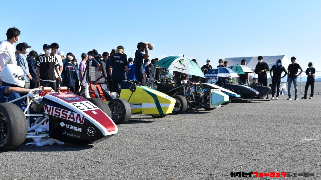 10時半になると、大阪大、神戸大、岡山大が暖気エリアへ入ります。岡山大はエンジンの始動前にトラブルが見つかり始動せず。午前は他の2校に加えて京工繊の3台が走行しました。