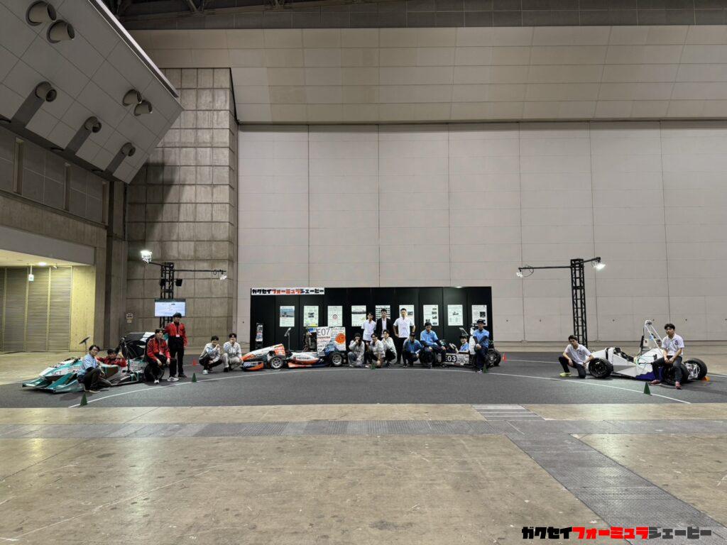 後方、黒色の壁には、学生フォーミュラの概要紹介と各チームの紹介を載せました。