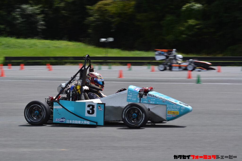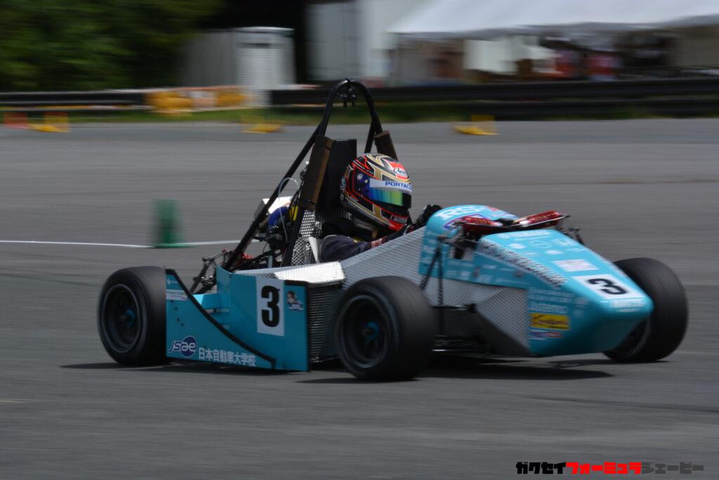 学生フォーミュラの競技は直接的なレースではなくタイム計測で競うため、特にエンデュランスは同じ車両が走る時間が長い。2台の混走となるので厳密には1台ではないが、通常のレースに比べると1台の車両を見る時間が長いことは間違いない。これが、同時に複数台が走るレースでは毎回毎回同じ車両にフォーカスしてじっくり撮影することは難しい。