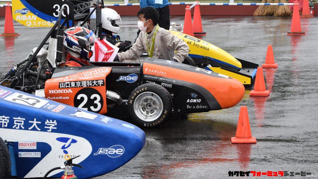 ブレーキ試験まで完了し、走行が可能で、プラクティスを走行したチーム、#3京都大学、#5千葉大学、#11東京農工大学、#12山梨大学、#16九州工業大学、#23山口東京理科大学、#25帝京大学、#28日本工業大学、#30富山大学、#32久留米工業大学、#33大阪工業大学、#48ホンダテクニカルカレッジ関東、#51東京都立大学の13チームです。